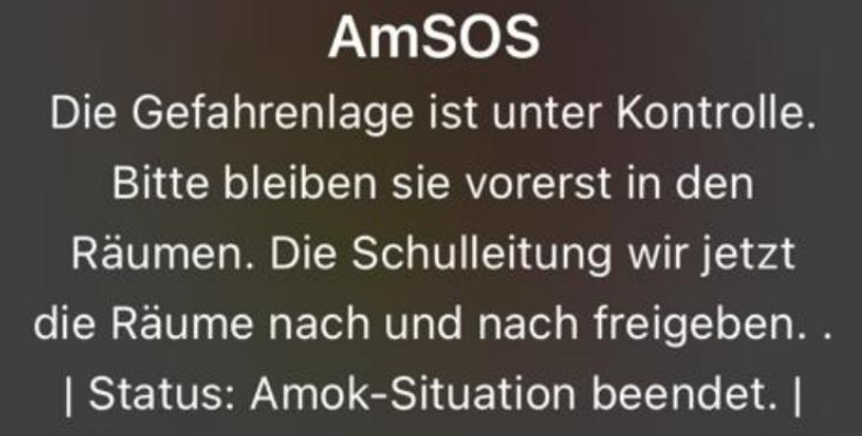 Alarm auslösen, kommunizieren und informieren über die AmSoS-App. Um eine sichere und einheitliche Informationsvermittlung zu gewährleisten, kann die Schulleitung zeitgleich Push-Nachrichten über die AmSoS-App an das gesamte Schulpersonal senden.
